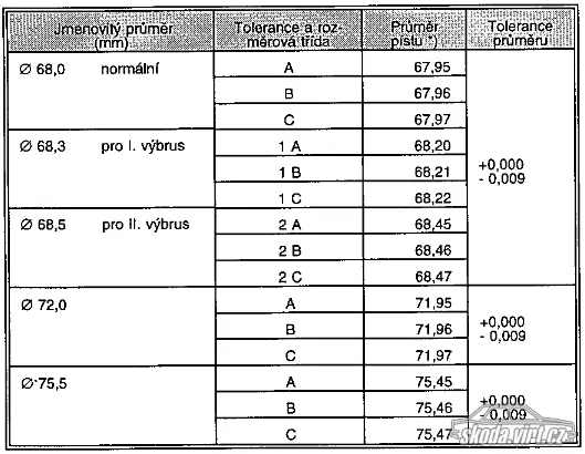 -> Bukaj: Cedrych z roku 1994 dokonce tvrdí že výbrusové písty neexistovaly dokonce ani pro agregáty 72mm, ale pouze 68mm.