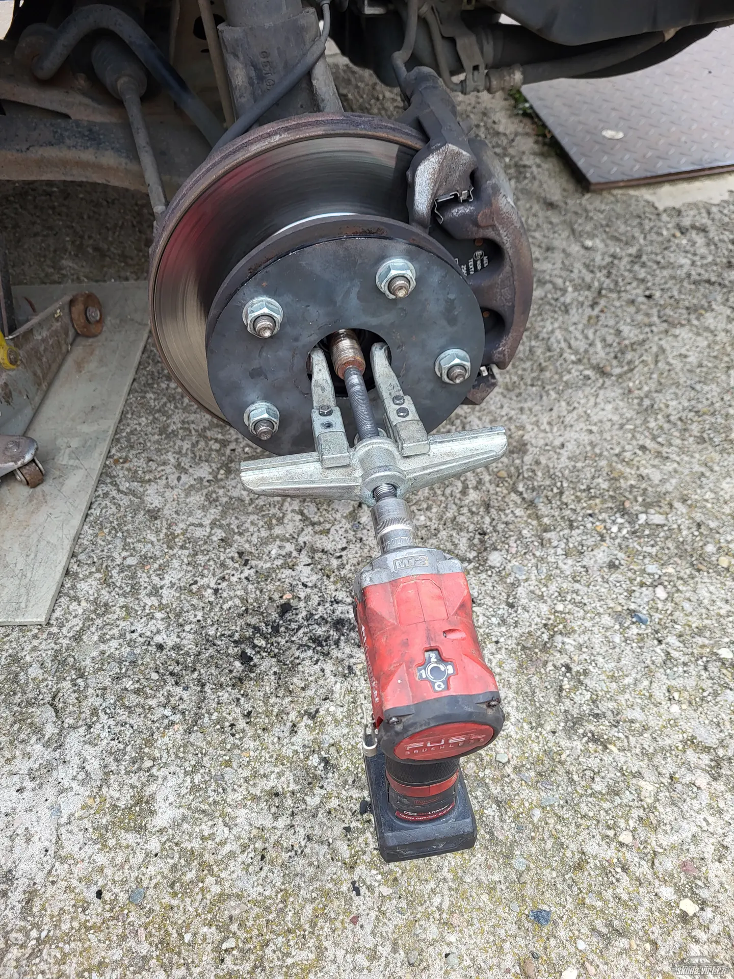 -> Matthes, záškodník z TechWebu 11.10.25 11:43:48: ne. Na vyndani loziska z tehlice. Kolikrat to nejde ven, kdyz povolis tech 5 torxu, protoze to drzi na tom 5mm osazeni. co lozisko stredi. Tak das delsi srouby, misto tech, co jsi vyndal a pres tu "podlozku" to vytlacis. Chtel jsem Ti to nafotit, ale poctive mazu a vzdy cistim, takze to tentokrat slo "samo". Takze jenom fotka toho, jak pres to vytlacuju poloosu, protoze stahovak, kterej by vysel pres naboj doma nemam a nechce se mi ho kupovat.